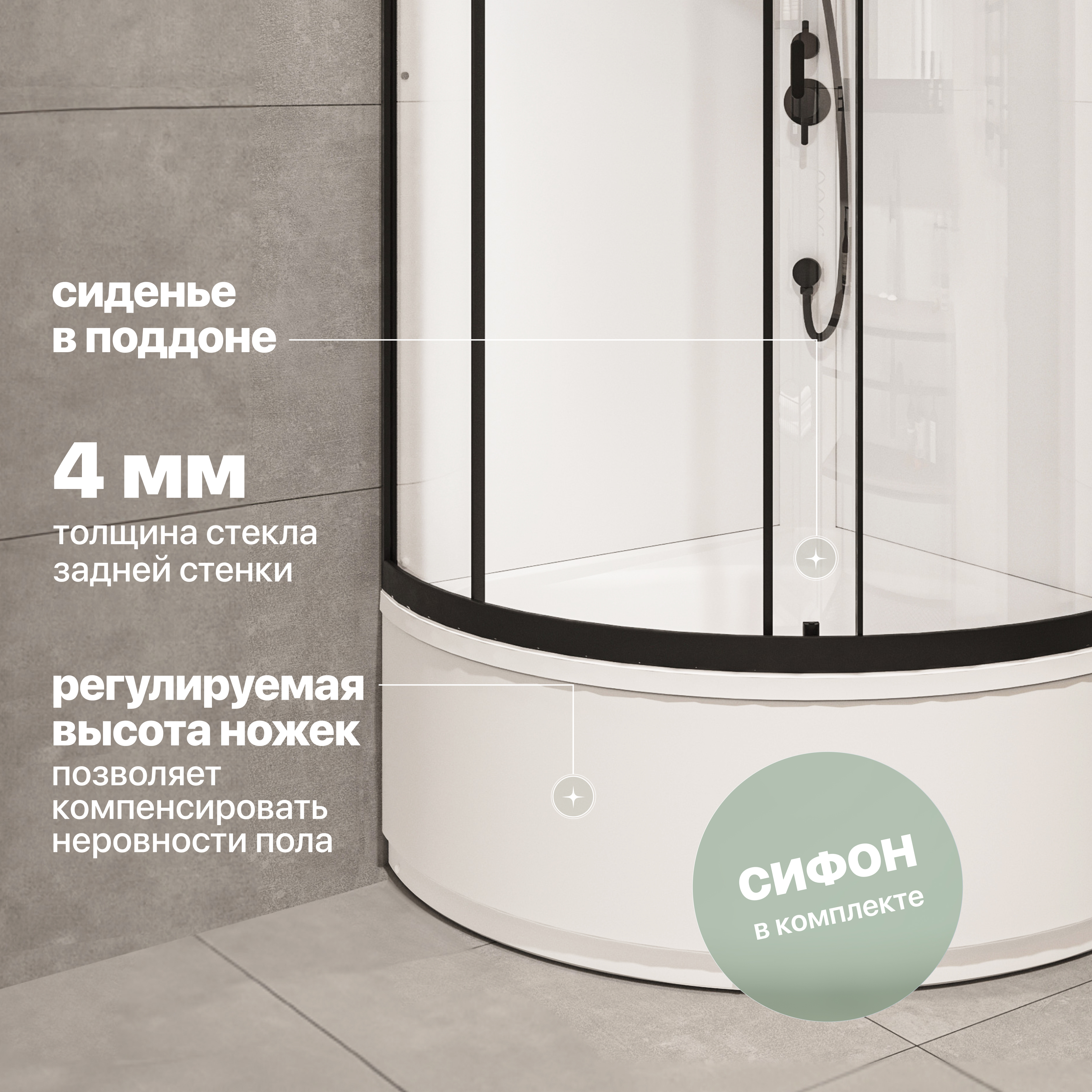 Оснащение: сифон,душевой гарнитур