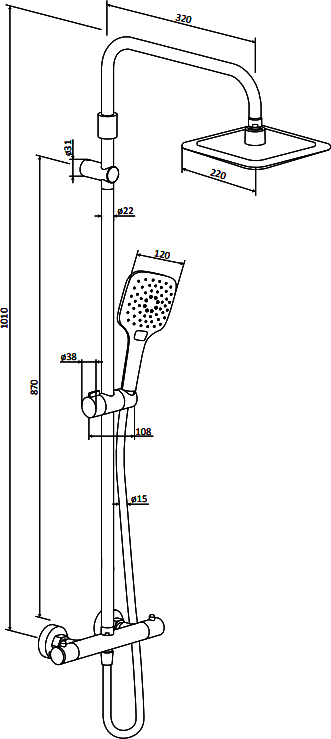 Вылет верхнего душа: 32 см
