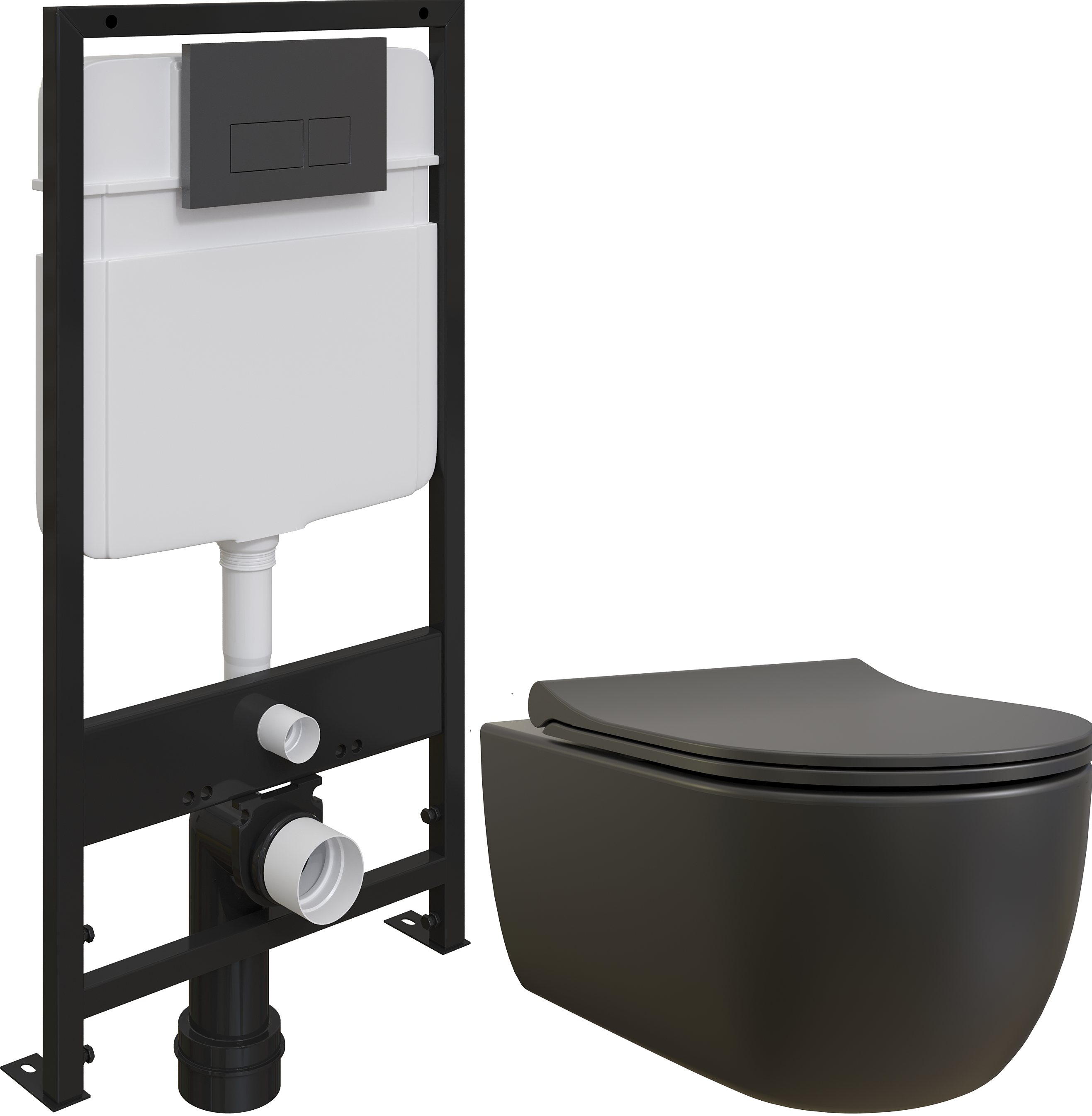 Комплект Унитаз подвесной BOCCHI V-Tondo 1416-004-0129 безободковый, черный матовый + Крышка A0336-004 с микролифтом, черная матовая + Инсталляция EWRIKA ProLT 0026-2020 + Кнопка 0044 черная матовая