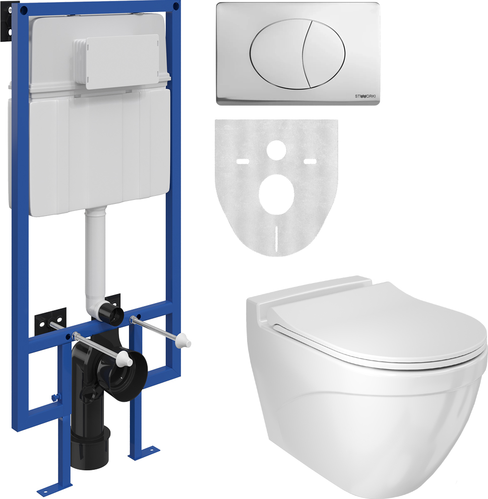 Состав комплекта: унитаз,кнопка смыва,система инсталляции