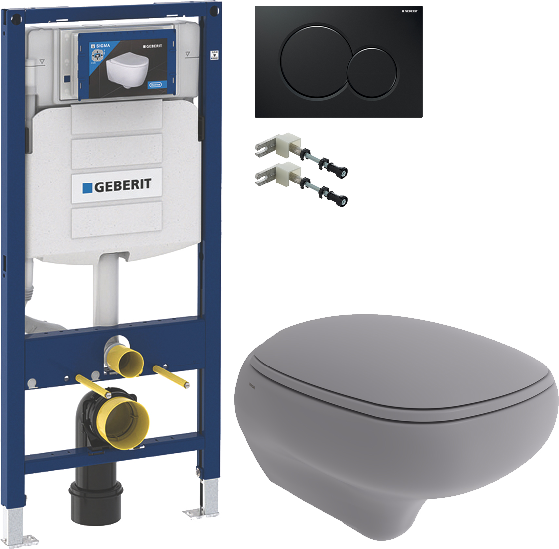Комплект Унитаз подвесной BOCCHI Fenice 1166-006-0129 с микролифтом, серый матовый + Система инсталляции для унитазов Geberit Duofix UP 320 111.300.00.5 + Кнопка смыва Geberit Sigma 01 115.770.DW.5 черная + Комплект крепления для инсталляций Geberit Duofi