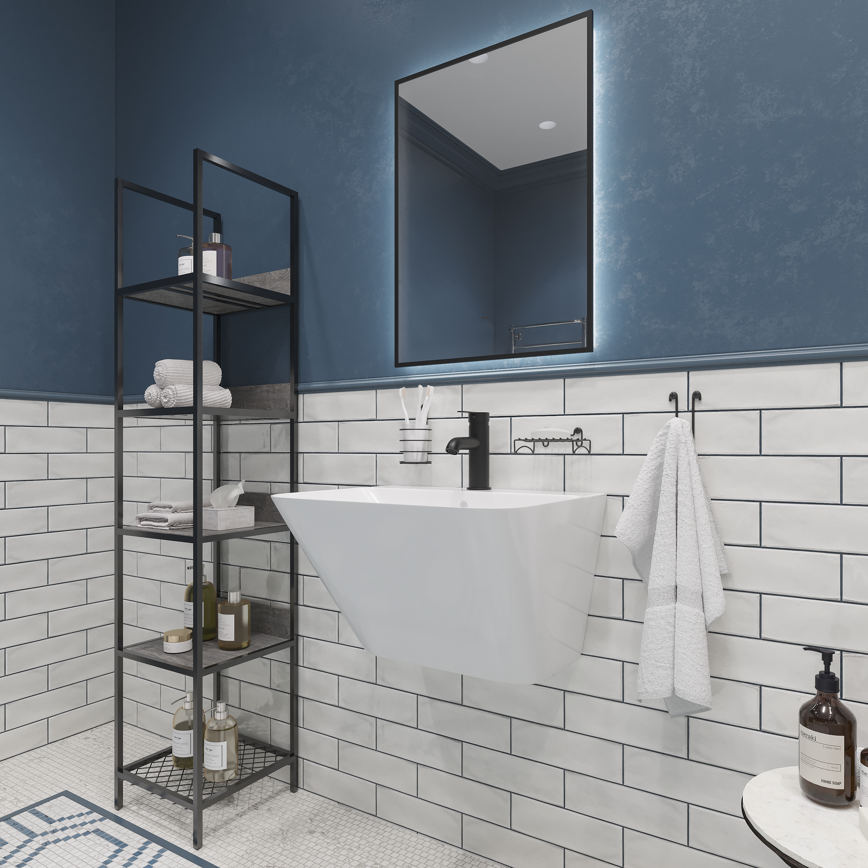 Комплект Раковина STWORKI моноблок 55 100604-101 с сифоном Wirquin Минор + Зеркало DIWO Элиста 50 черное