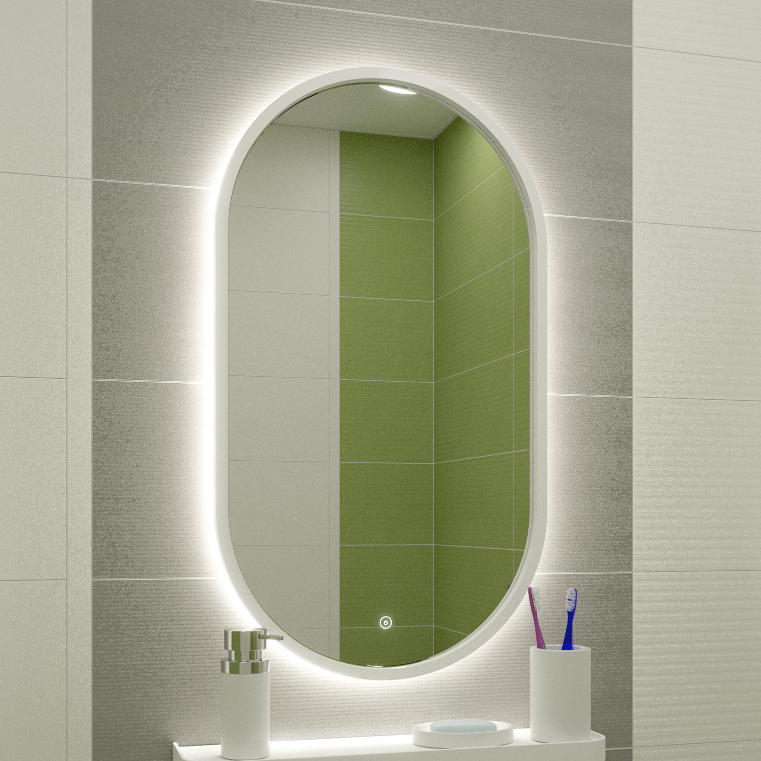 Оснащение зеркала: регулируемая подсветка,подвесы