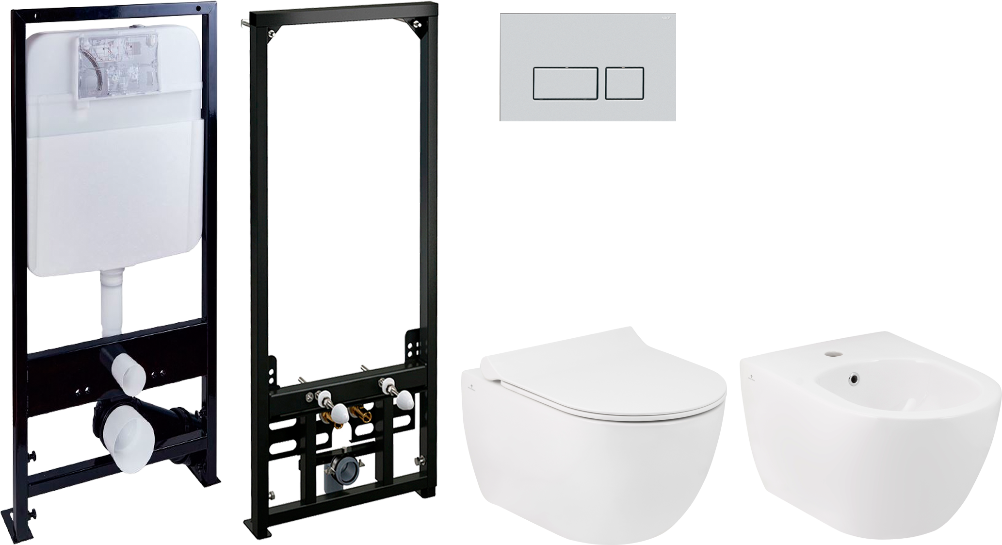 Состав комплекта: унитаз,кнопка смыва,система инсталляции,биде