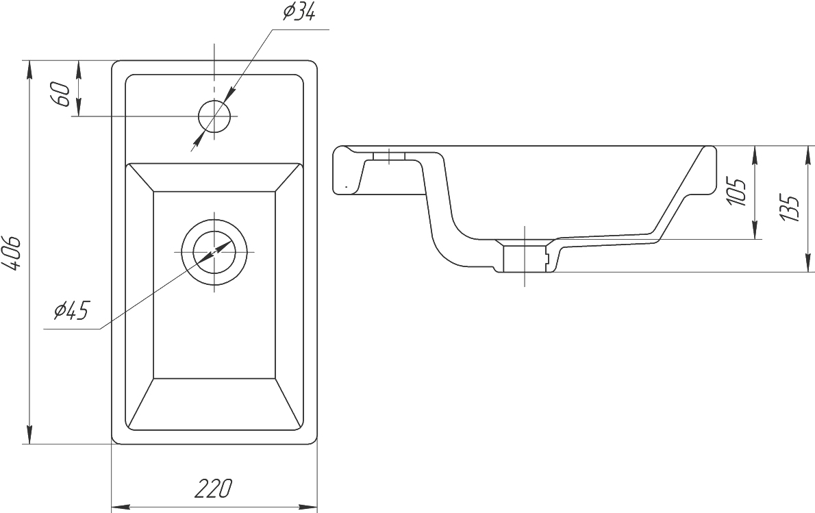 Диаметр слива: 4.5 см