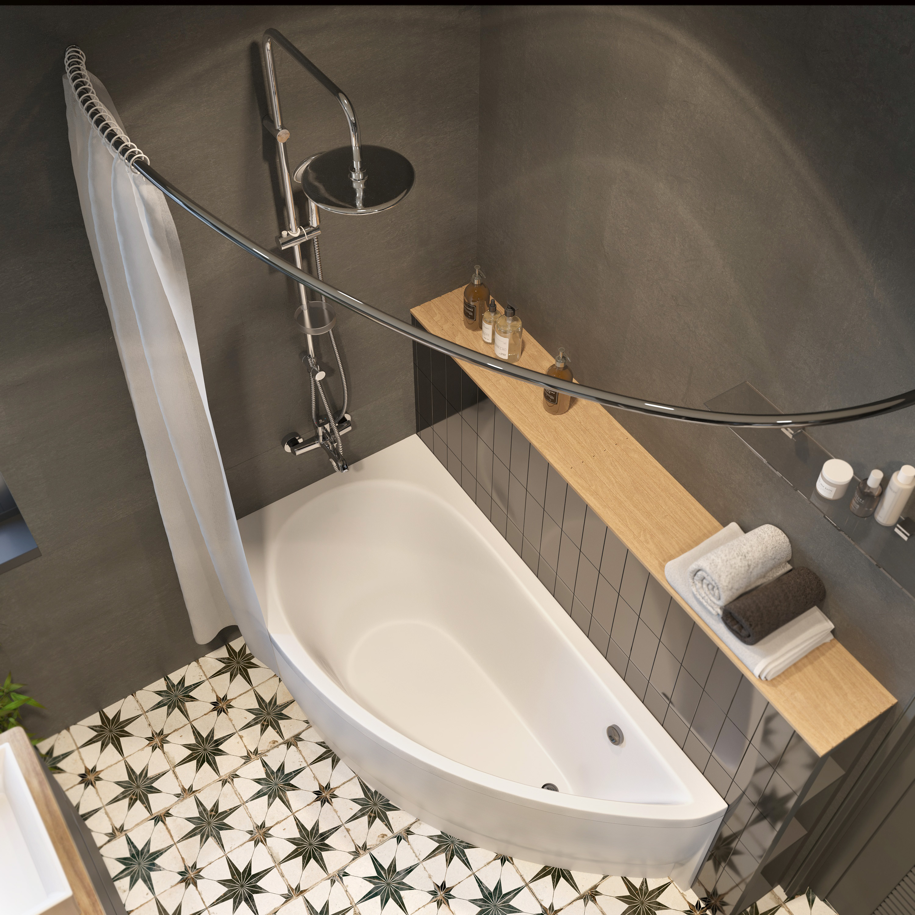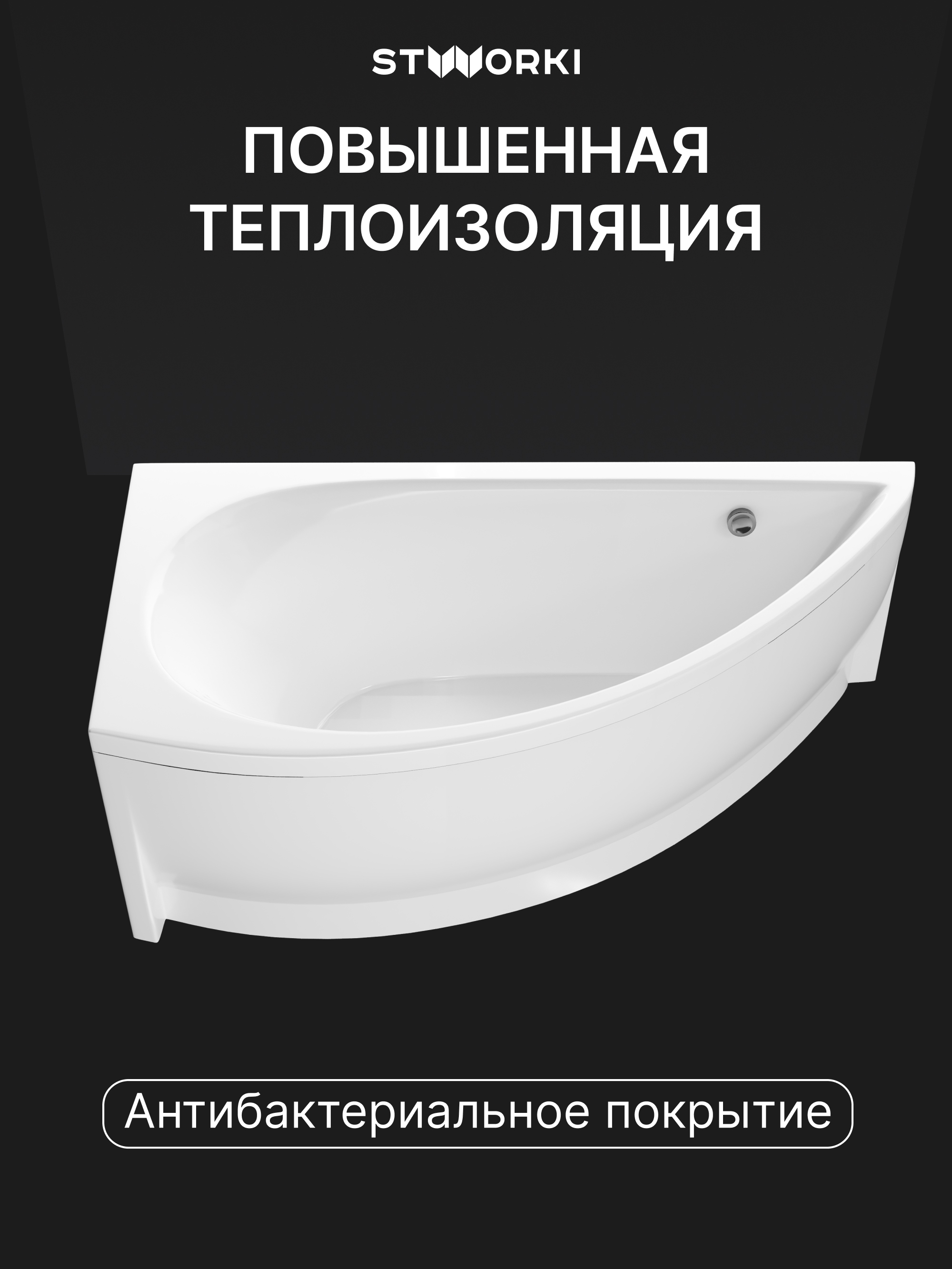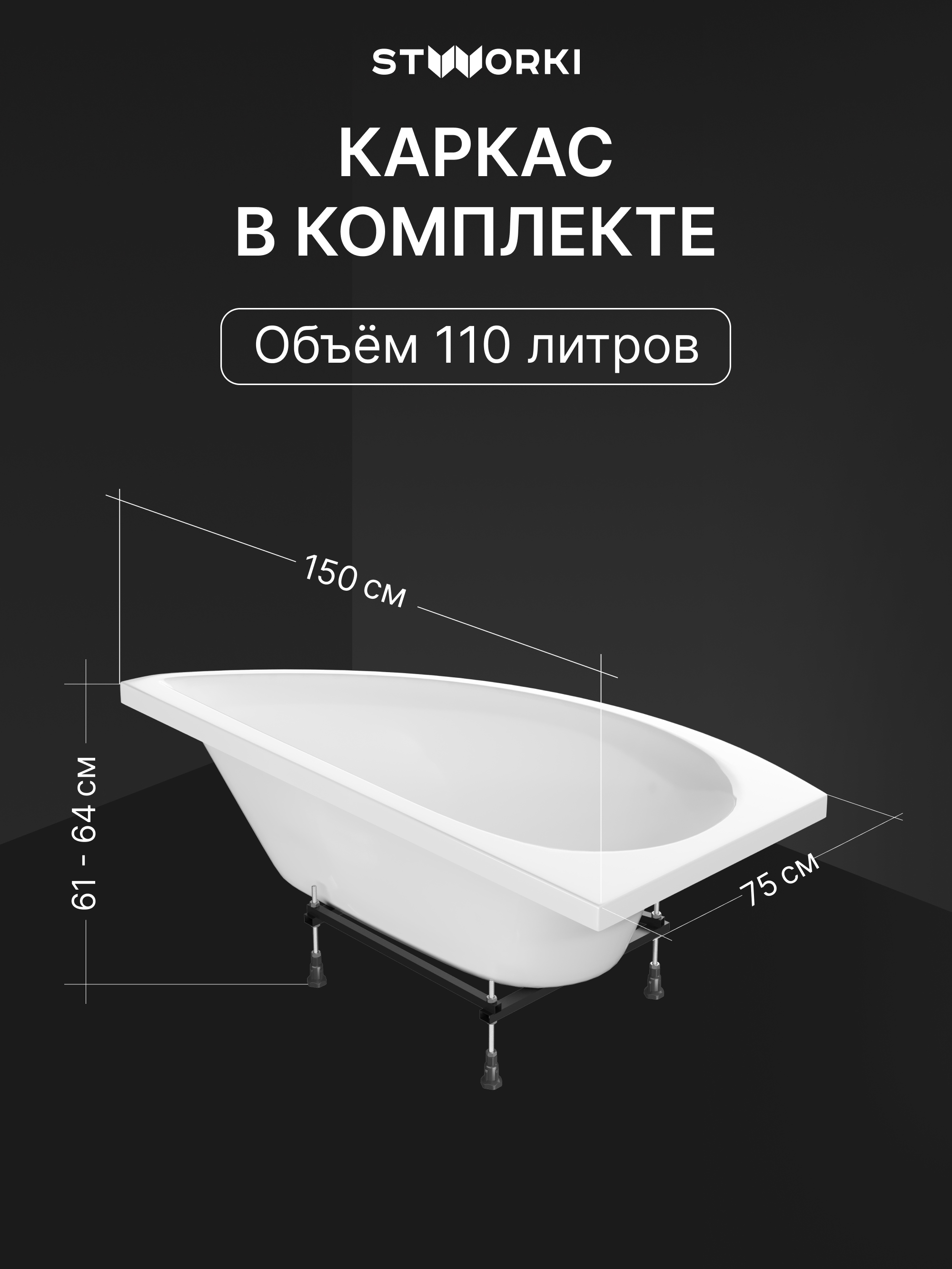 Акриловая ванна STWORKI Лунд L 150x75 см, угловая, левая, пристенная, белая, асимметричная, с каркасом