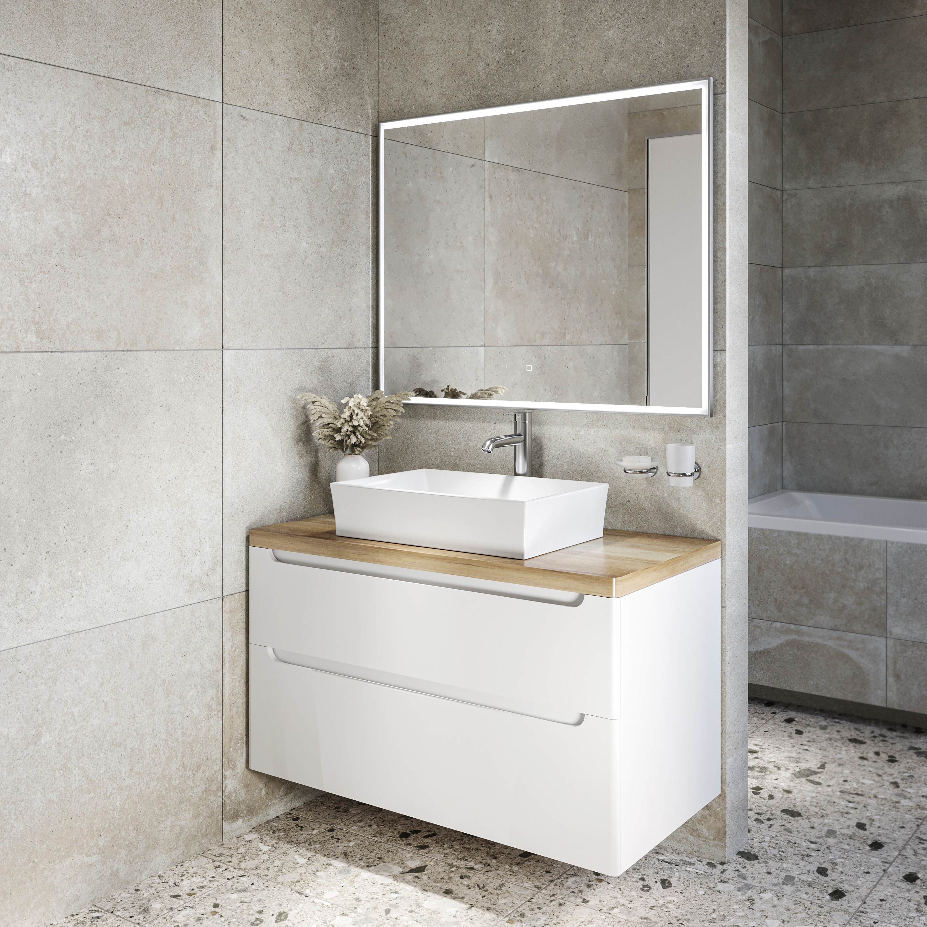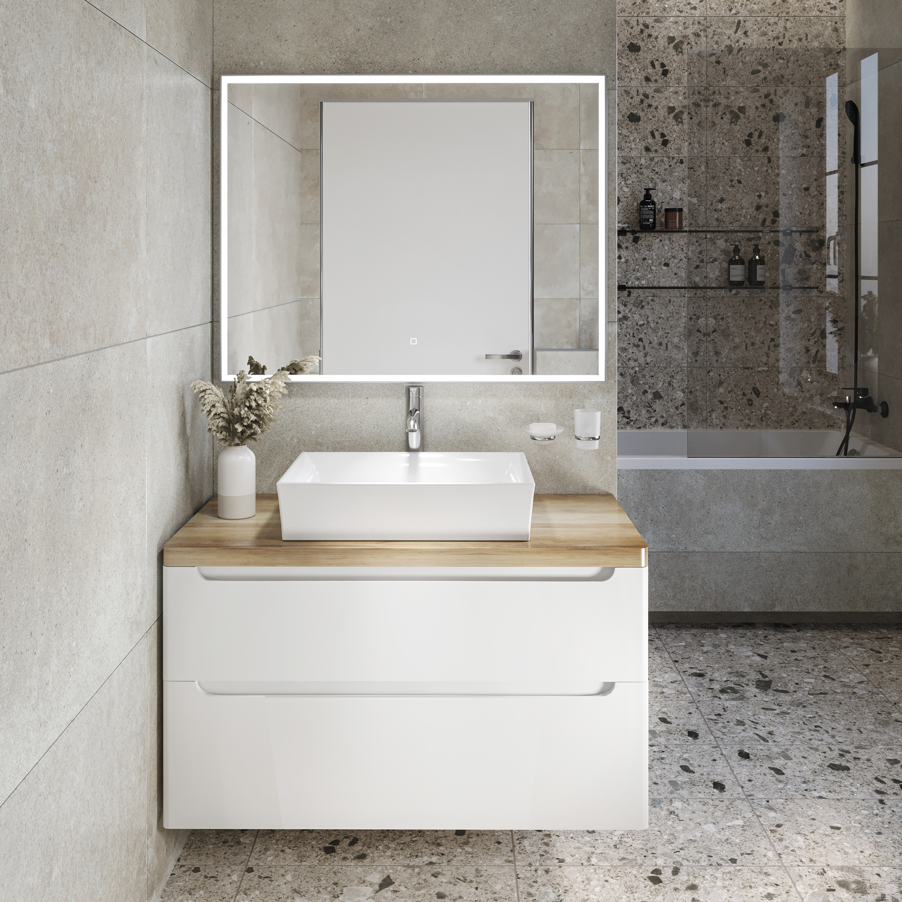 Тумба с раковиной STWORKI Берген 100 белая со светлой столешницей, раковина Bocchi Vessel 1172-061-0125